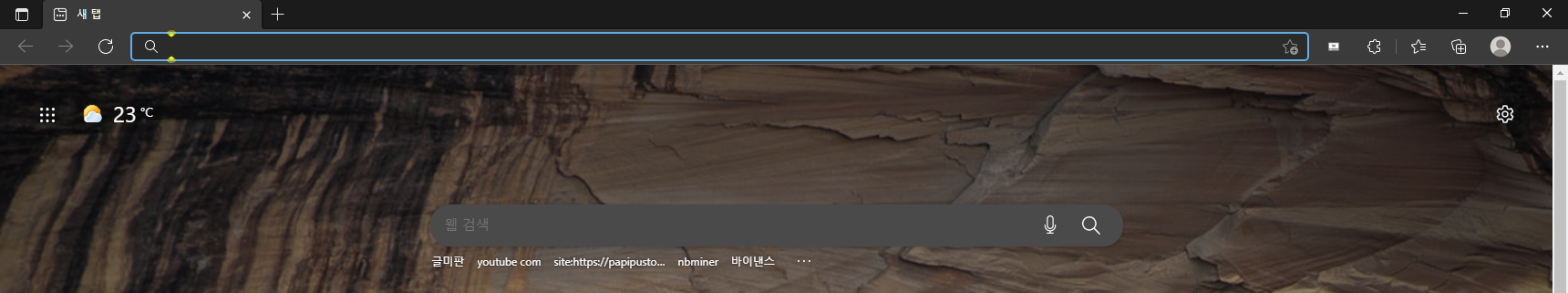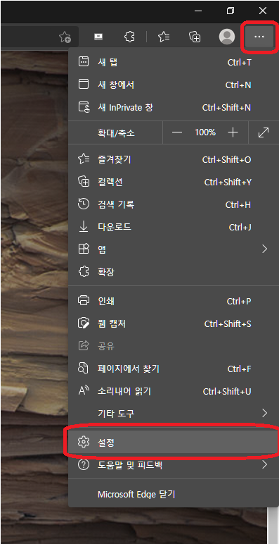 엣지를 실행하시면 위와 같은 창이 뜨고 우측 상단에 보시면 [ ... ]로 표시된 더보기 메뉴가 보입니다.