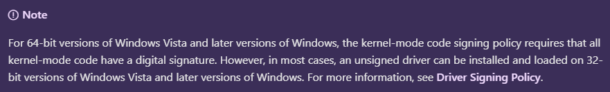 Loading Test Signed Code - Windows drivers