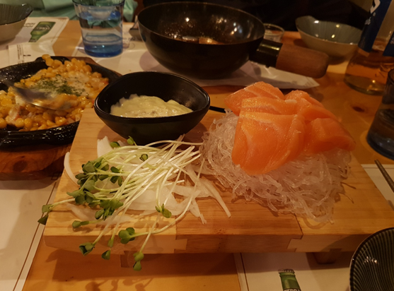 고추냉이 소스와 함께 나온 생연어회는 촉촉하고 부드러운 식감으로
