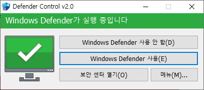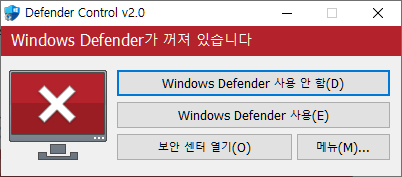 자동 재실행을 방지하기 위해서는 윈도우 디펜더 자체를 활성화/비활성화하는 방법이 있습니다.