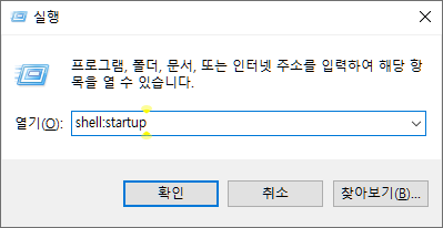 실행창에서 shell:startup 입력 후 확인을 눌러주세요.