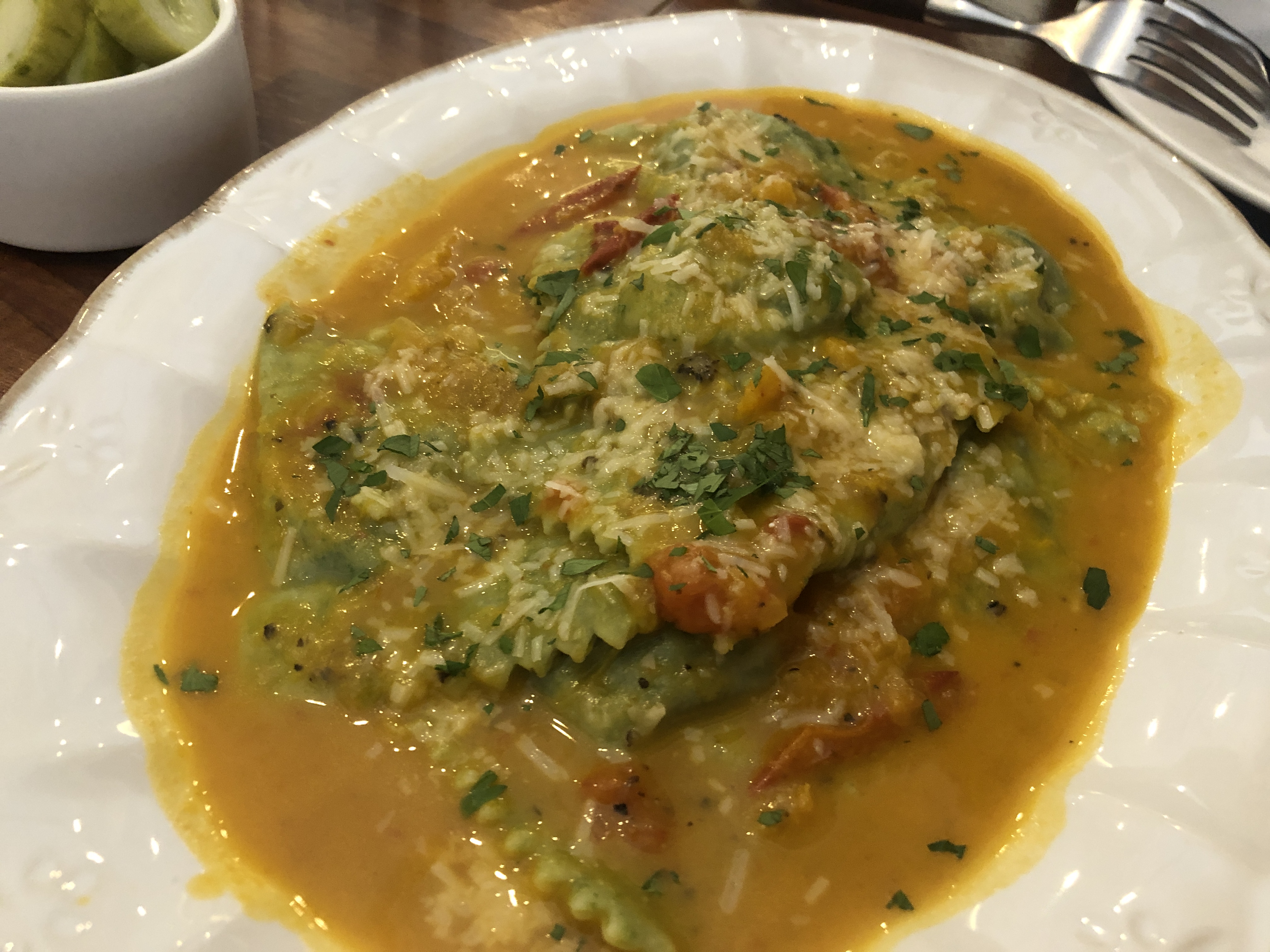 단호박 소스가 아주 담백하고 생면 라비올리와 잘 어울립니다.