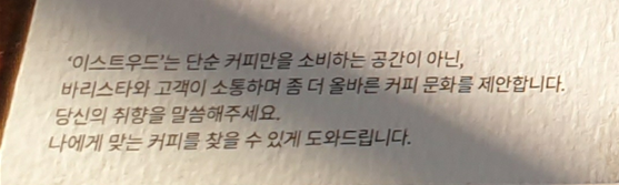 메뉴판 한쪽에 저런 문구가 있었네요.? 나중에 봐서 나에게 맞는 커피를 찾지 못했습니다. ㅜㅡㅜ
