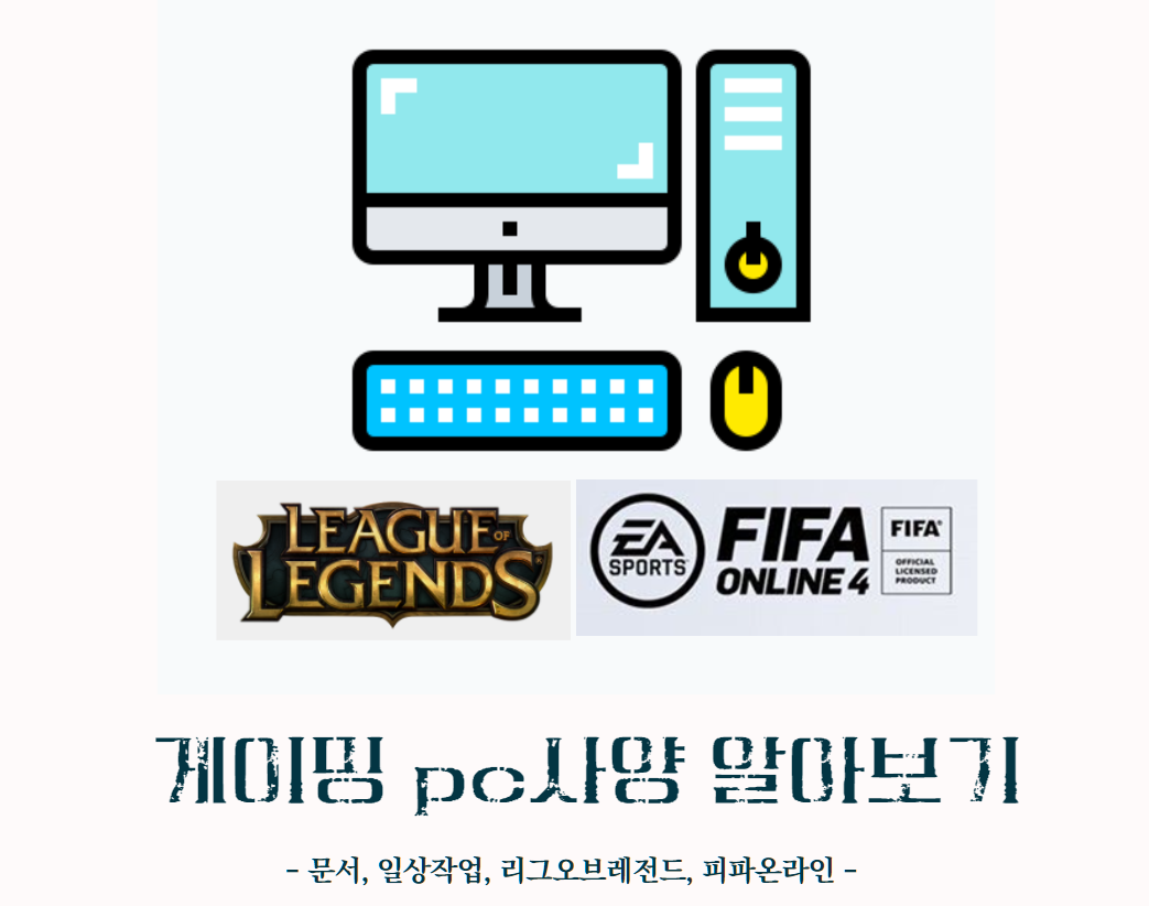 아직도 인기 있는 게임인 리그오브레전드, 집에서 문서작업, 기본 사용(영상 시청)을 하는 동시에 친구들과 가끔씩 롤, 피파를 돌리는 PC 사양에 대해서 말씀드리겠습니다.