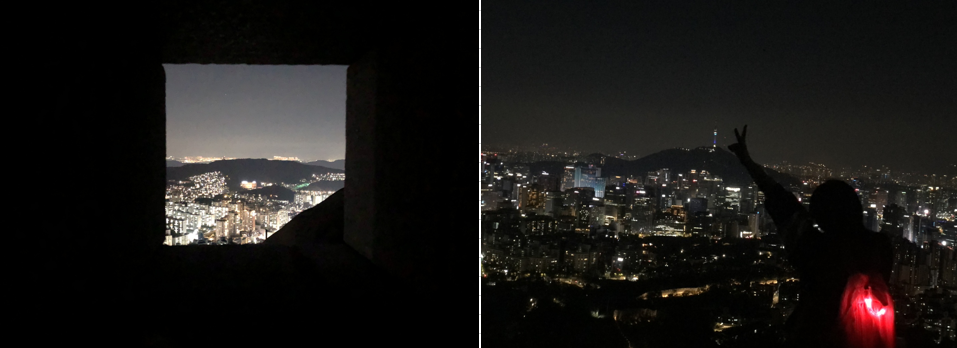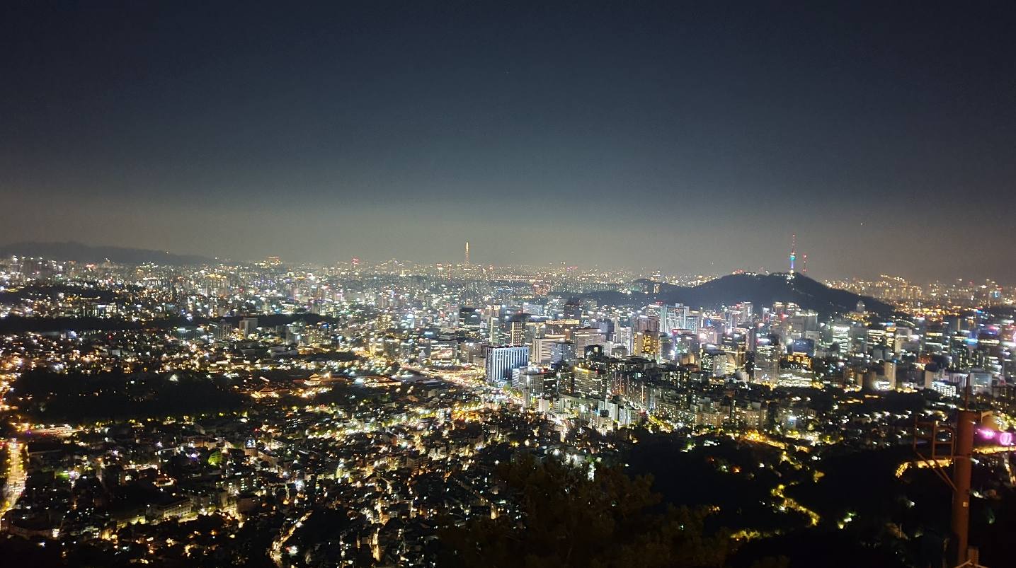 자! 이제 더 높은 정상에서의 '인왕산 야간 뷰'를 보여드리겠습니다. '멋짐을 주의하세요'