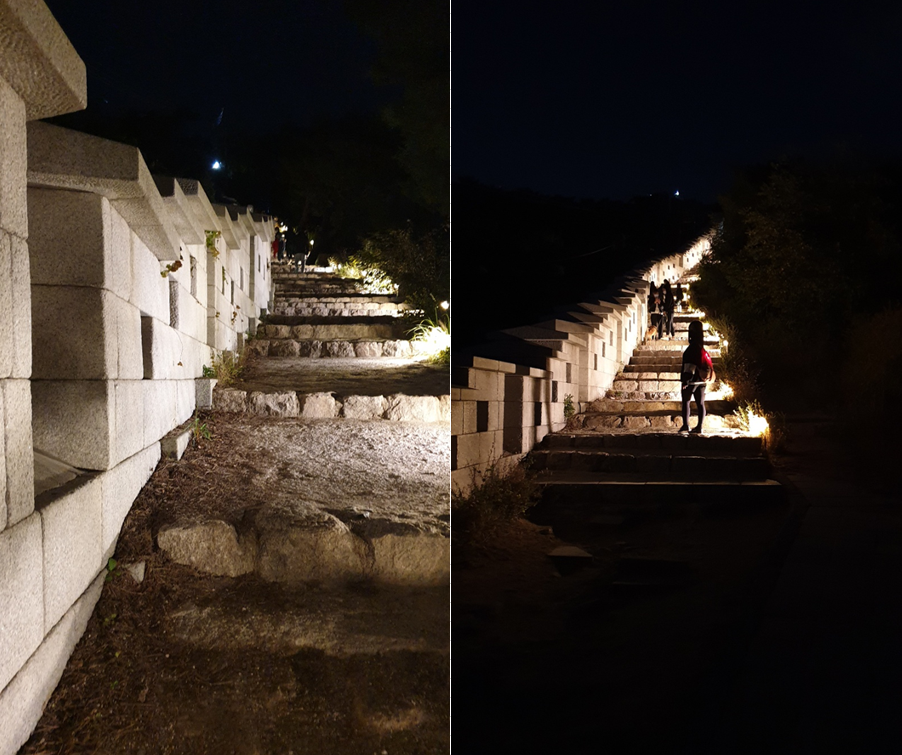 밤에도 성곽길을 따라 조명을 켜주기 때문에 초입 부분 등산에 문제는 없습니다.