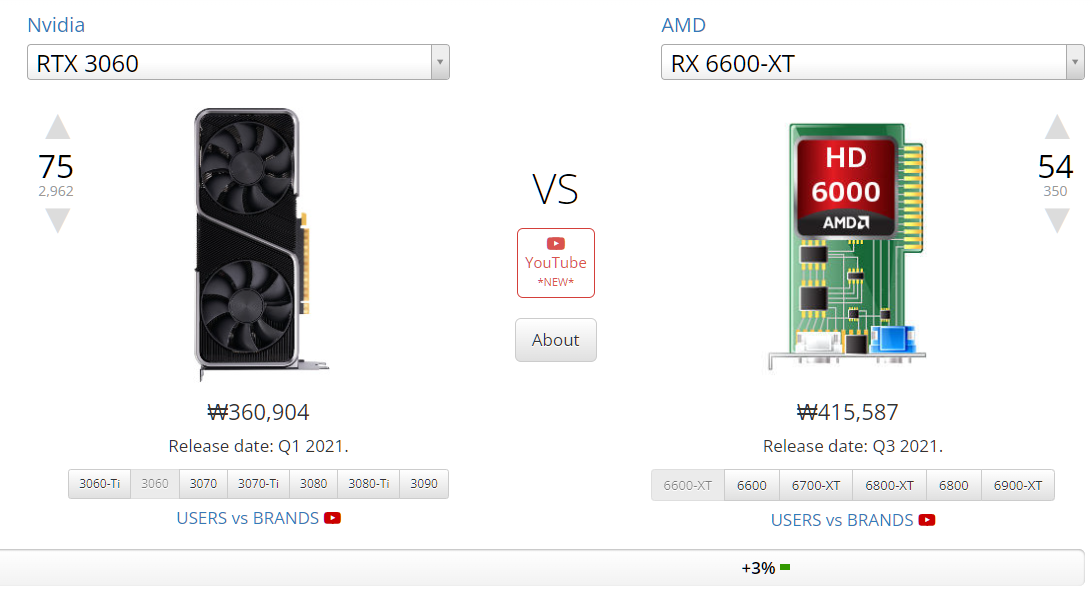 권장사양 기준에서 제가 선택한 사양은 RX 6600-XT입니다. 이 그래픽카드를 넣은 이유는 가격 때문입니다. 요즘 채굴 때문에 그래픽 가격이 정말 비싸졌는데요. AMD 그래픽카드가 성능은 Nvidia 제품과 동일하지만 채굴 성능이 낮기에 가격이 조금 더 저렴합니다. (요즘 그래픽카드 가격 = 채굴 성능이라는 말이 나올 정도네요.)
