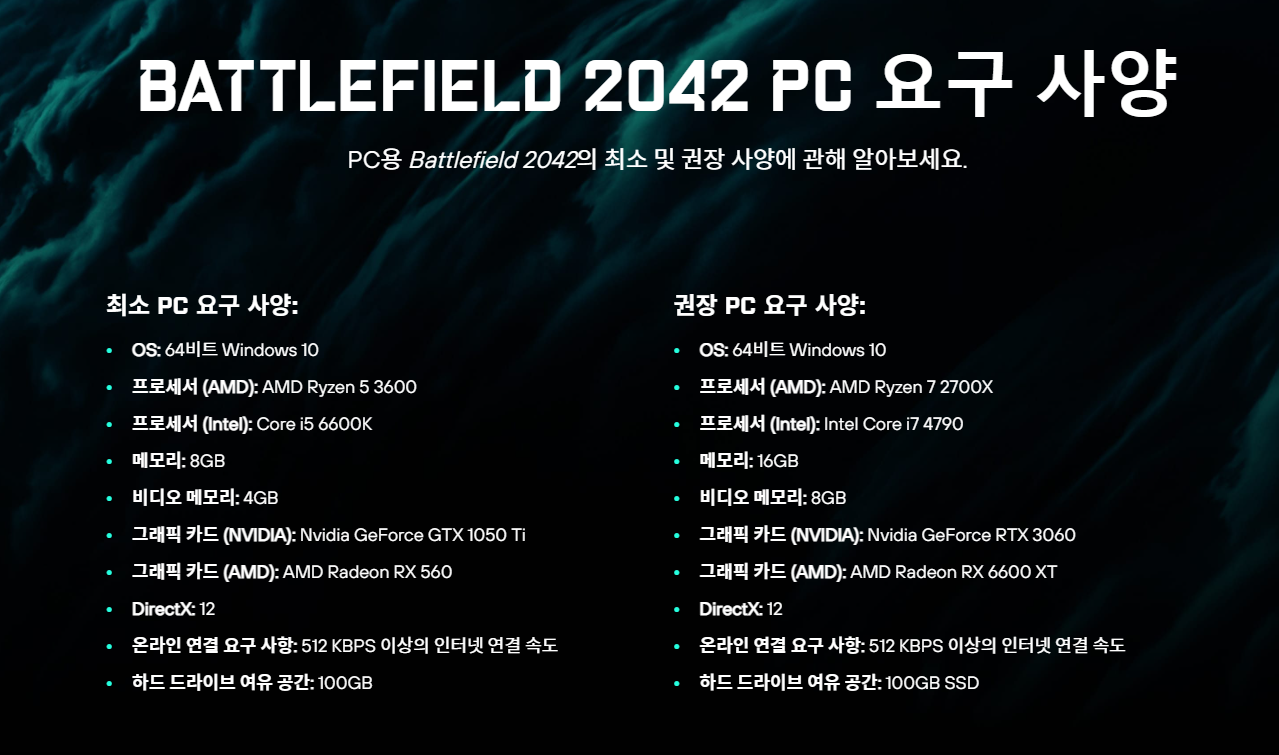 이번에 짜여진 견적은 배틀필드 2042 공식 요구 사양을 참고 삼아서 만든 부분이 있습니다.