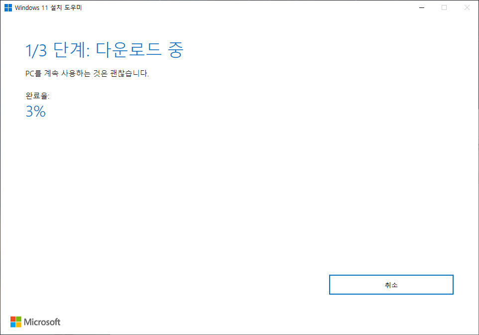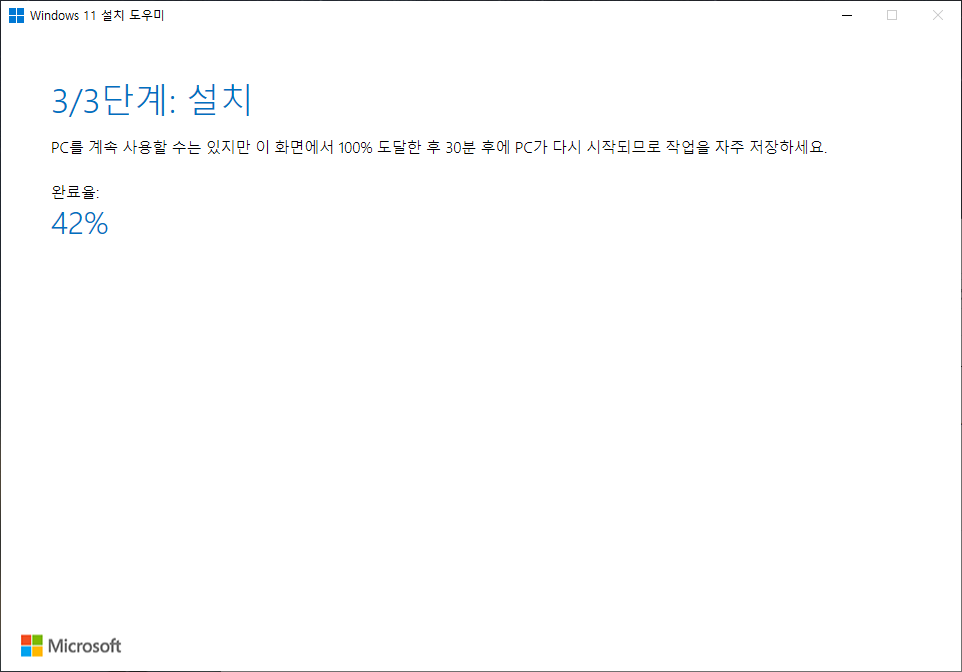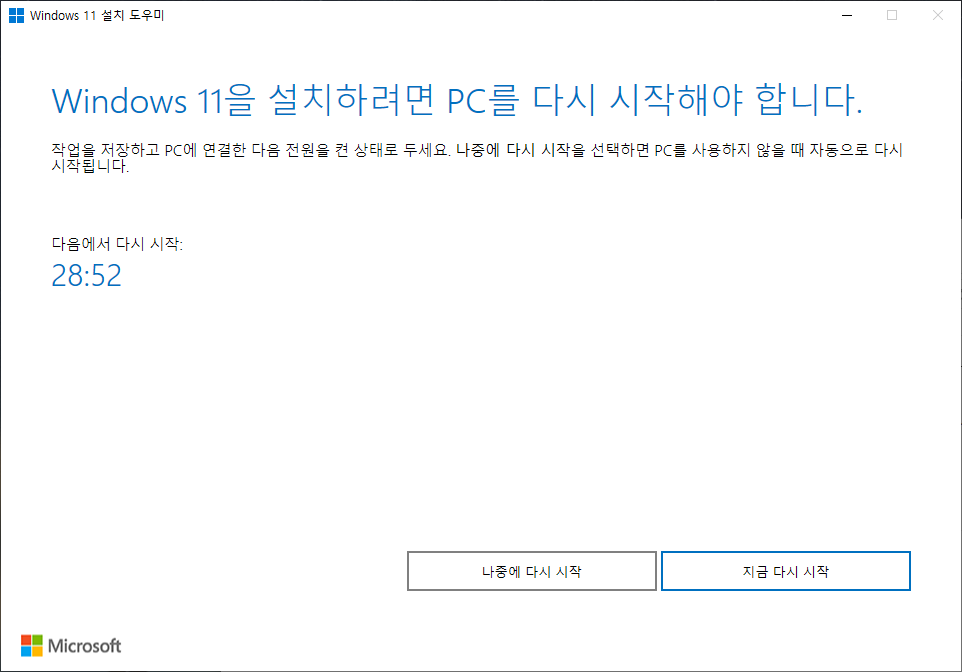 위의 두 가지 방법을 통해서 설정 변경이 완료되신 분들은 재부팅 후 다시 한번 Windows11 installationAssistant를 실행시켜줍니다.