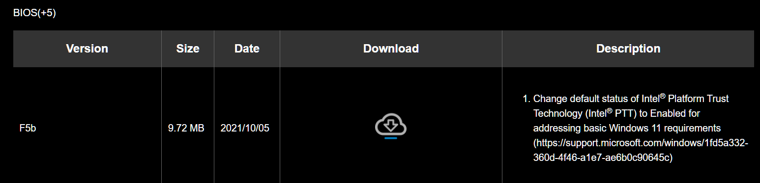 업데이트를 진행하게 되면 TPM 관련 기능 및 요구조건들이 세팅된 바이오스가 설치됩니다.