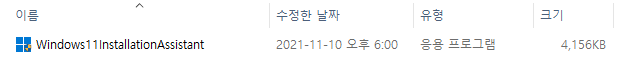 다운로드가 완료된 Windows11 installationAssistant를 실행시켜줍니다.