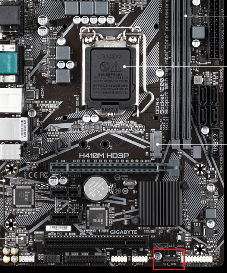 인텔 10세대 보드로 아래쪽에 TPM 단자가 있어 사용 가능한 걸 확인할 수 있습니다.