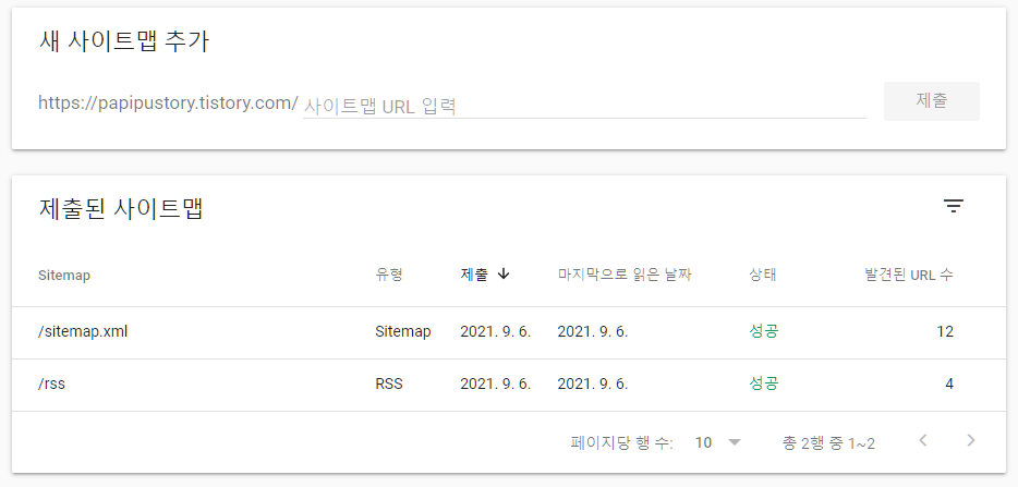 2-2 티스토리 Google Search Console 사이트맵(sitemaps) 추가