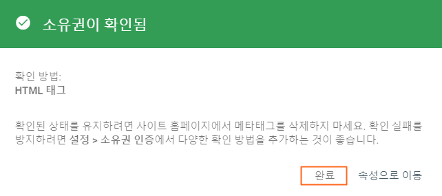 다시 Google Search Console로 돌아가서 완료를 누르시면