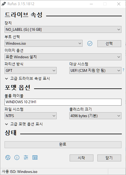 [Rufus 사용방법]