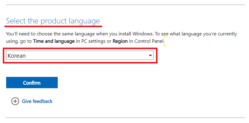 다운로드 버튼을 클릭하시면 바로 아래쪽에 언어를 선택하는 메뉴가 열립니다. 당연히 Korean을 선택하신 후 Confirm을 눌러주세요.