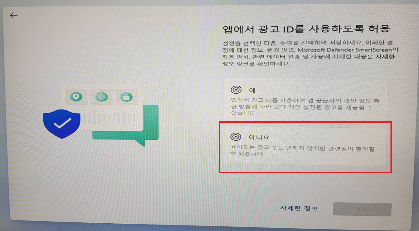 ▶[광고 ID를 사용 설정] //아니요를 선택합니다.