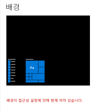접근성 - 디스플레이 - '바탕 화면 배경 이미지 표시'