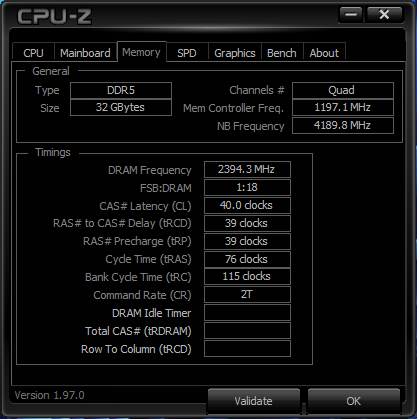 DDR5 4200 MHz입니다 레이턴시(응답속도)가 높게 나온 부분이 있지만 차차 개선되리라 생각됩니다.