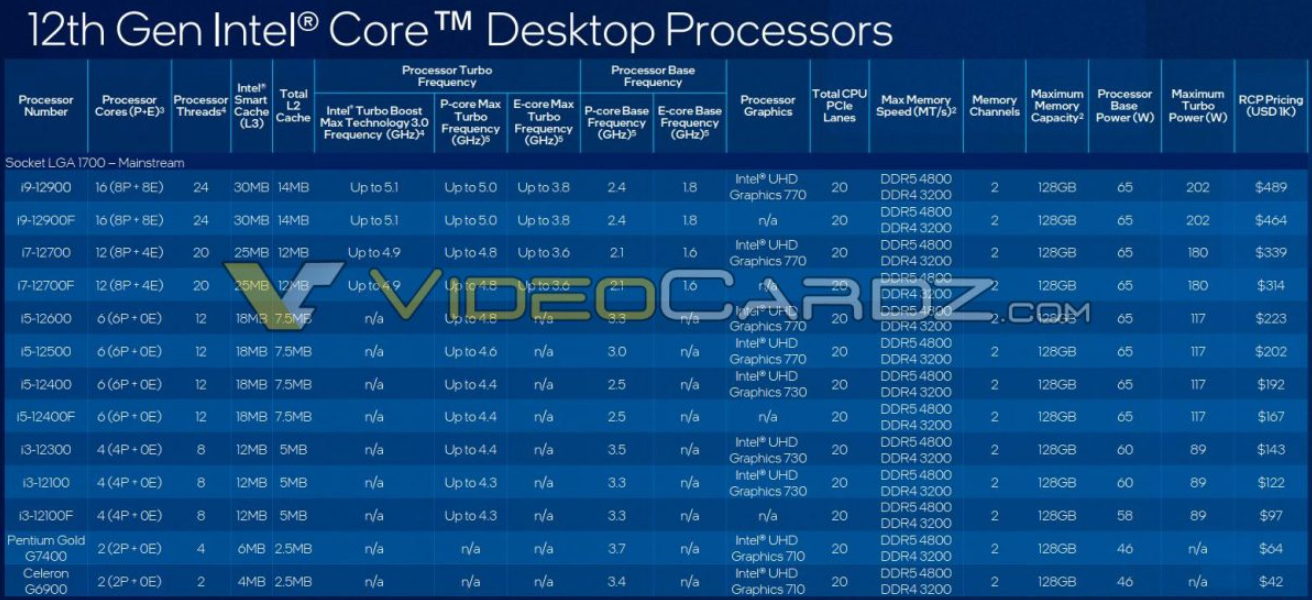 [ 12세대 모델별 성능 ]