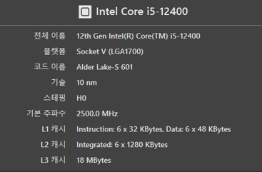 12세대 i5-12400 (10nm공정) |
