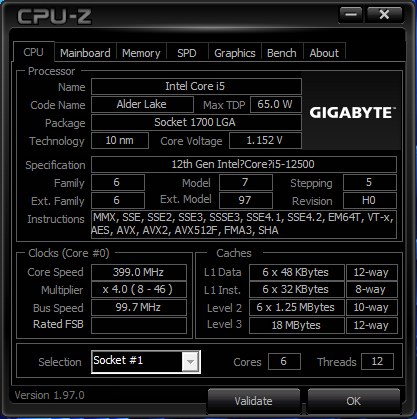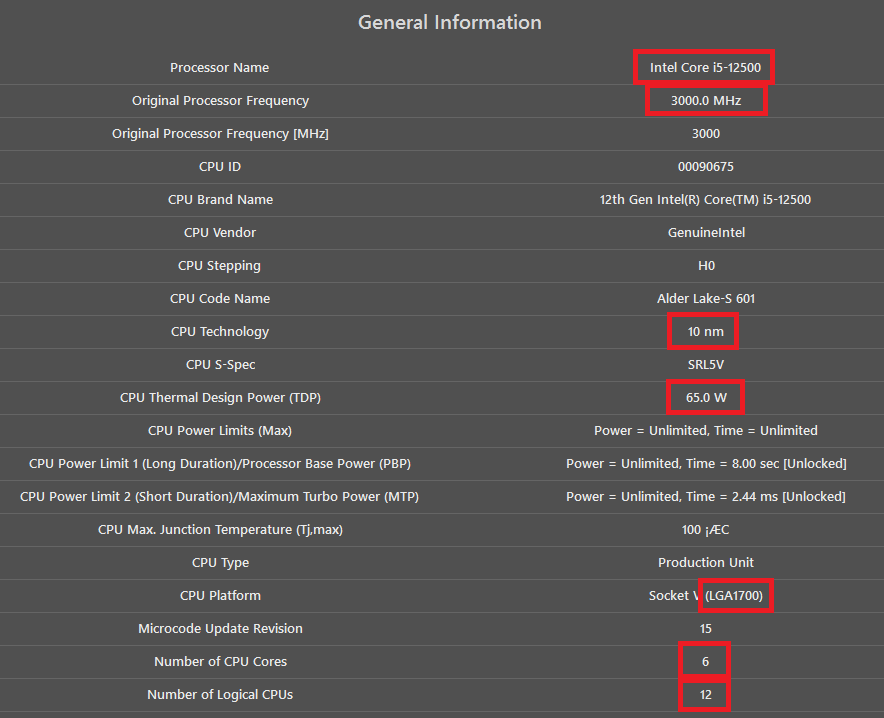 | CPU | Intel i5-12500 |