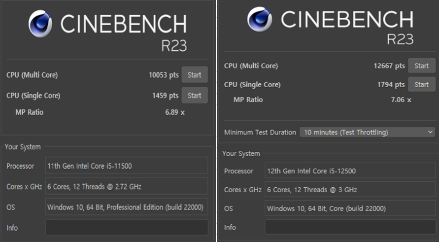 [시네벤치 i5-11500 vs i5-12500 ]