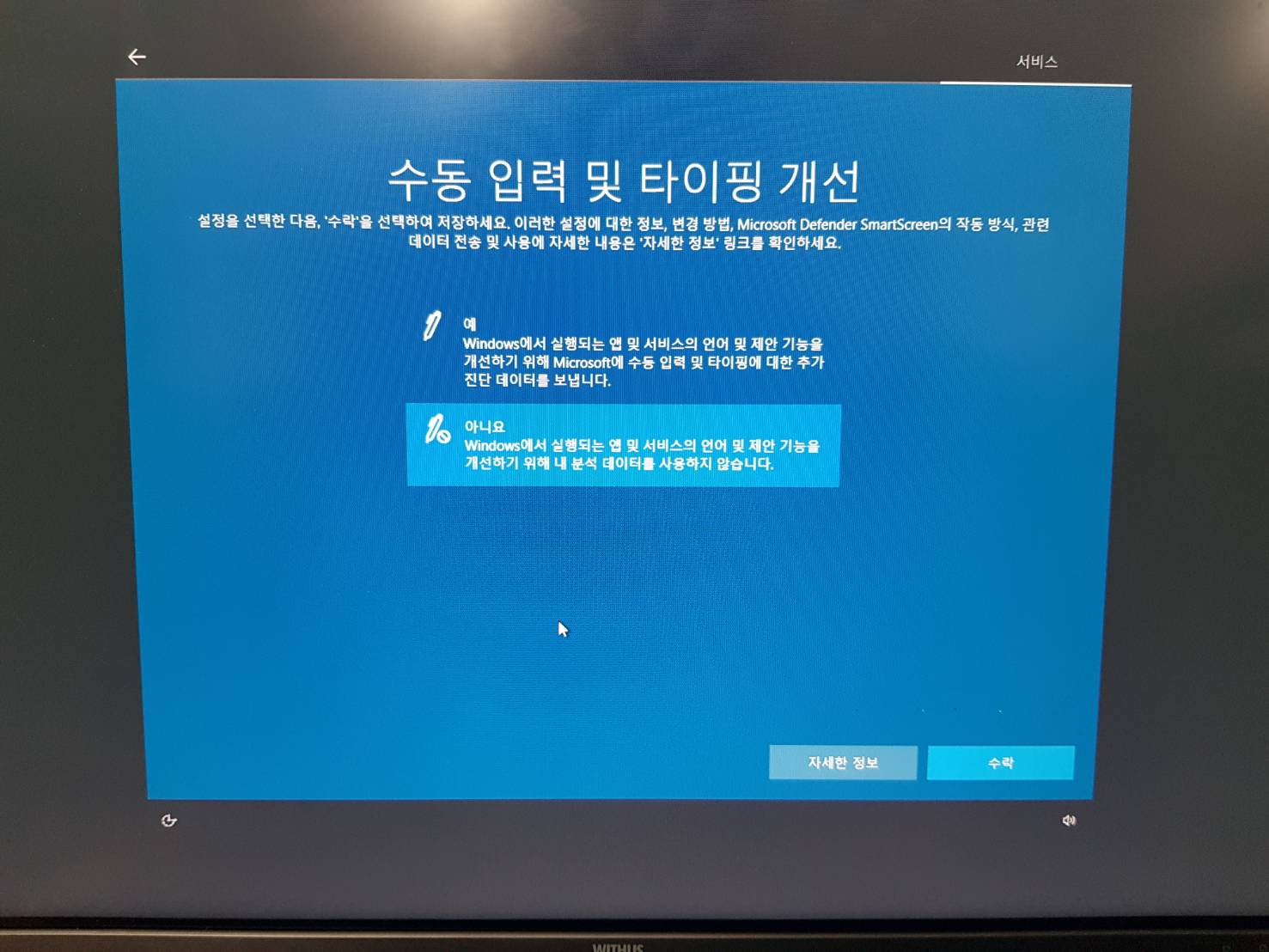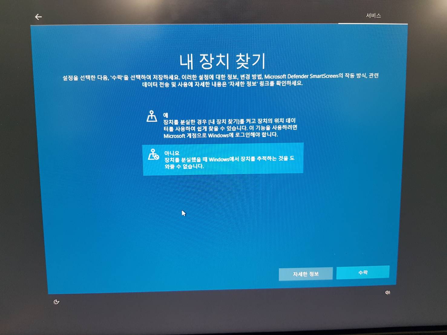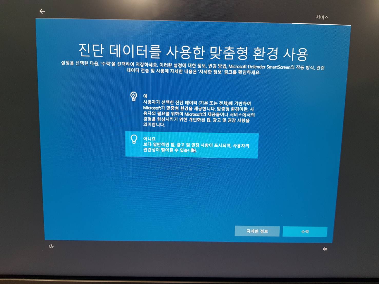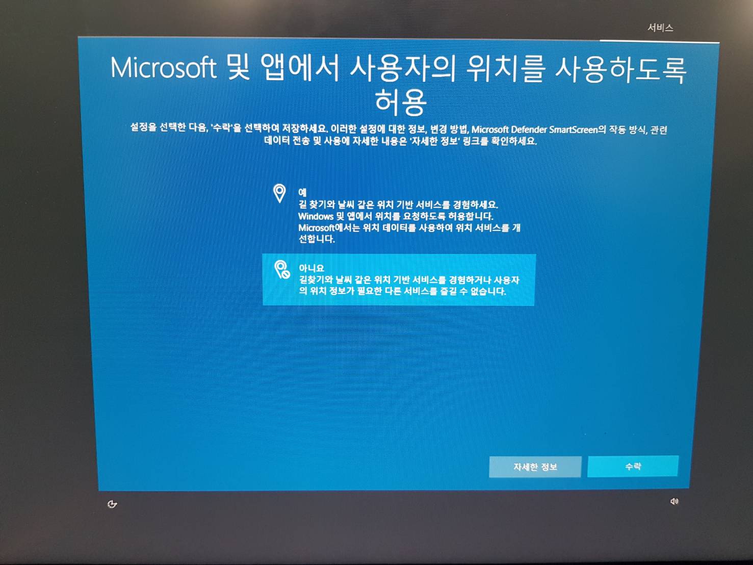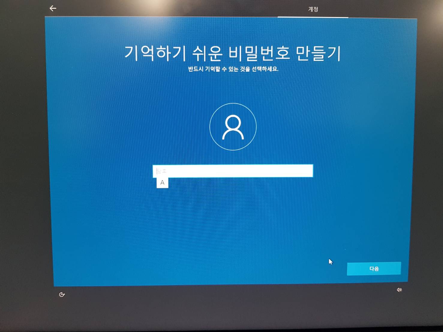◈만약 LAN(인터넷선)이 연결되어있다면 MS 계정 로그인 화면으로 창이 뜨게 됩니다.