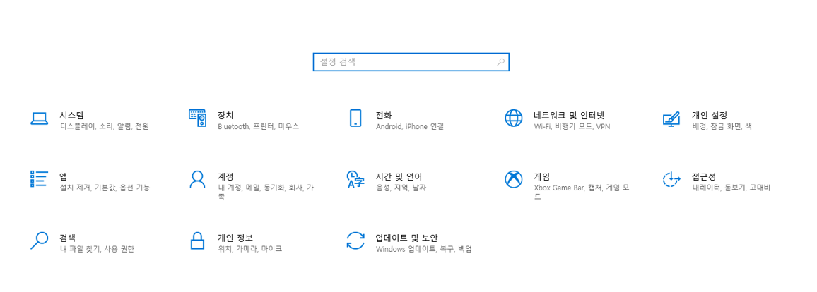 설정창 여는 방법은 좌측 아래 윈도우 로고 우클릭 - 설정 메뉴, 또는 검색창에 설정 검색하는 방법이 있습니다.