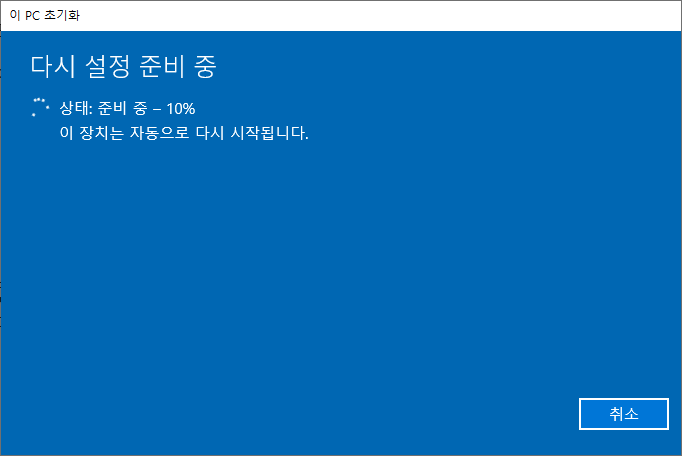 //초기화는 윈도우자체가 부팅이 안될 경우 실행이 불가능합니다. 이와같은 상황에서는 설치 usb를 사용해서 포맷을 진행해야 합니다.