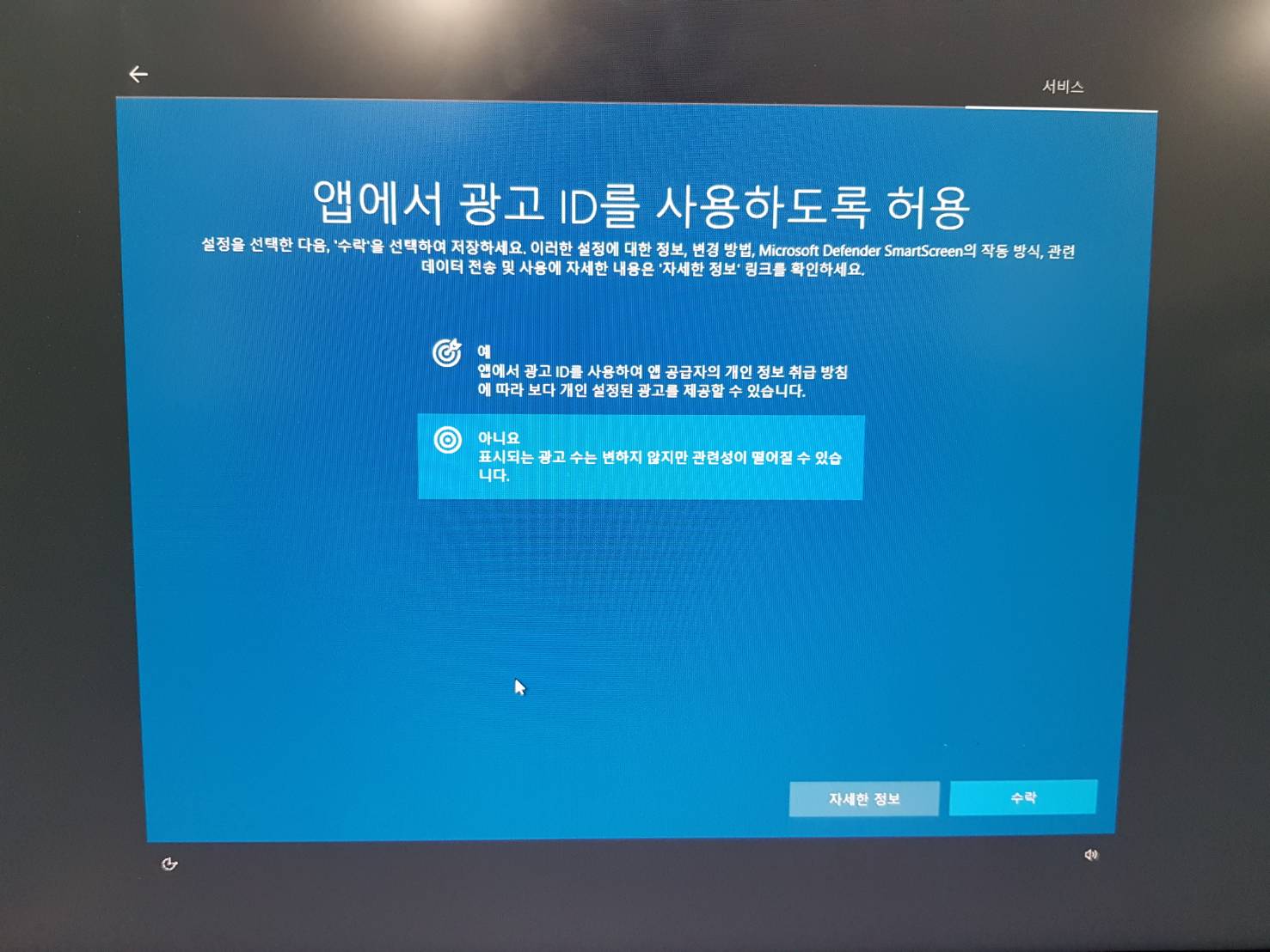 ◈정상적으로 초기화가 완료되면 윈도우를 처음 설치할 때와 마찬가지로 국가 키보드 등과 같은 설정 항목이 보이게 됩니다.