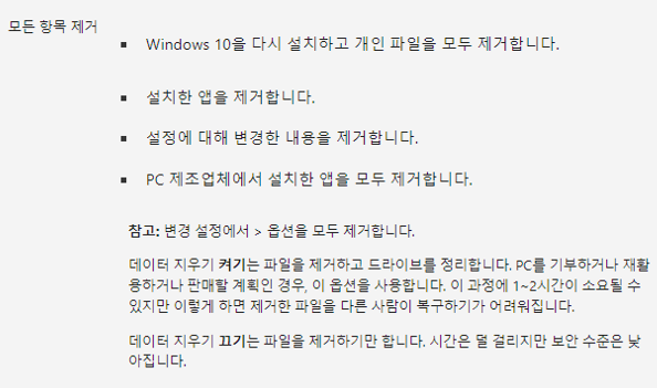 //개인자료 백업 후 초기화 진행에 있어서 드라이브 정리를 선택하시면 안됩니다.!