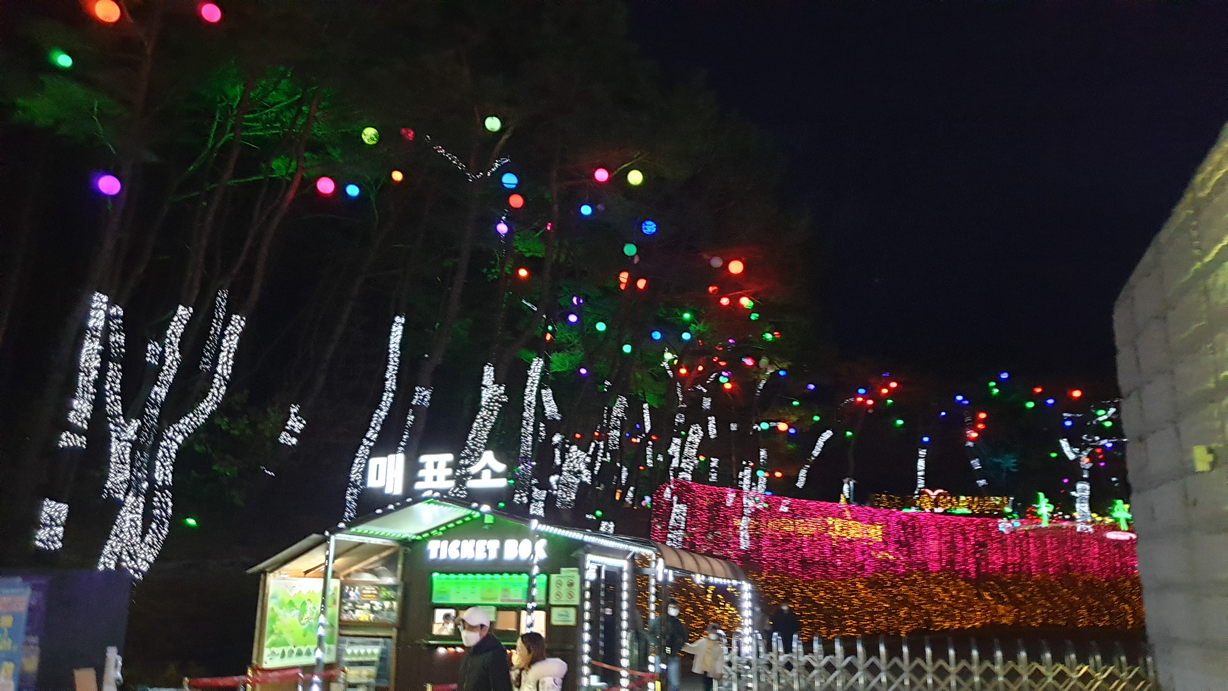 그리고 셔틀버스를 운행하고 있어서 버스를 타고 빛 터널을 통해서 매표소에 도착했습니다.