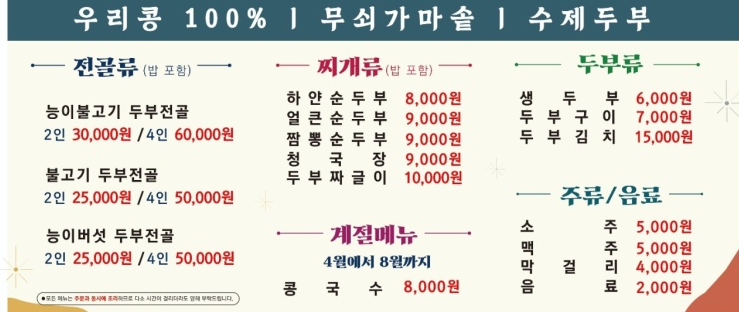 100% 우리 콩을 사용한다는 시그니처 메뉴인 얼큰순두부와 하얀순두부를 주문하였습니다.