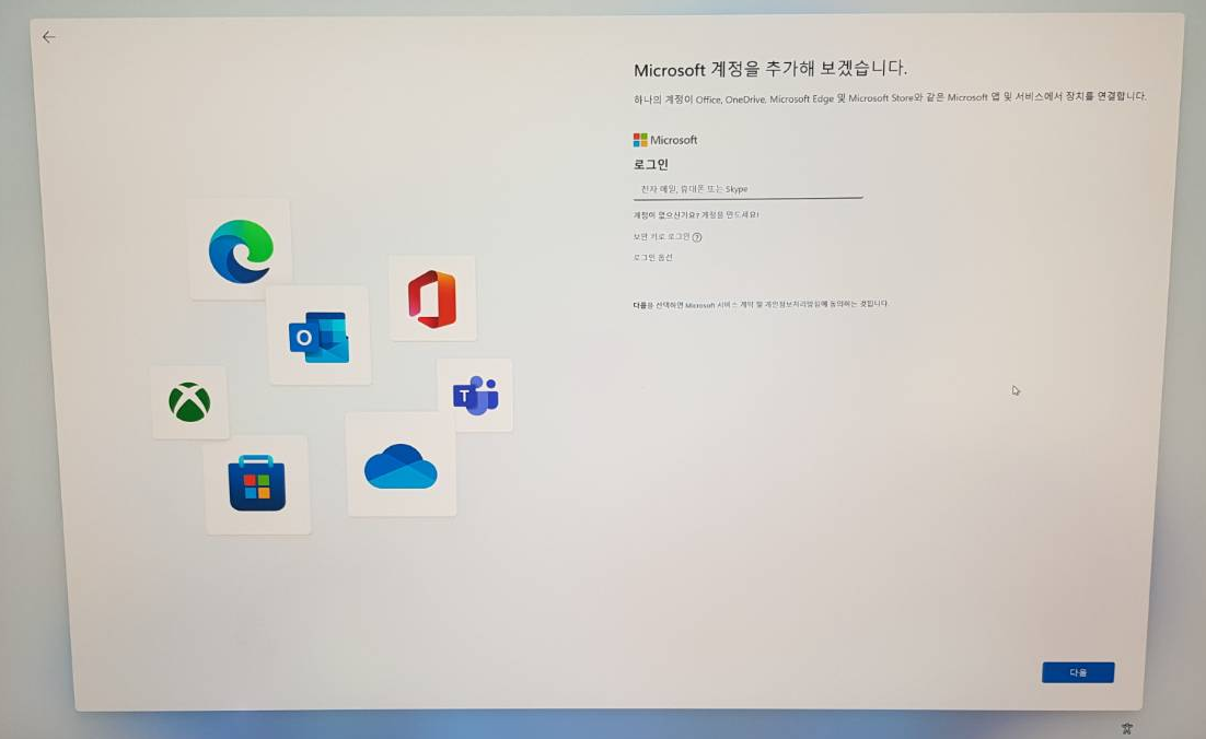 포맷이 완료된후 마이크로소프트 로그인 화면이 나오는경우, 로그인을 하지 않고 로컬 계정을 사용하는 우회 방법을 설명드리겠습니다.