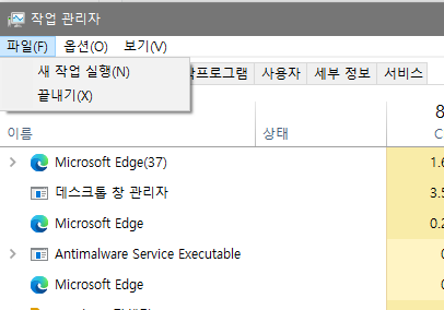 #만약 안되신다면 3번째 방법의 taskmgr로 작업 관리자를 실행 '파일' - '새 작업 실행'을 클릭해주세요.