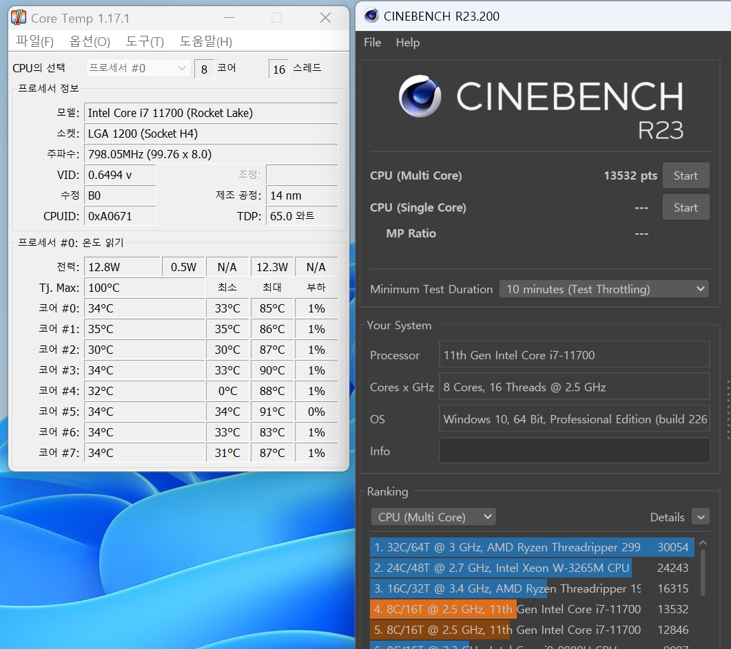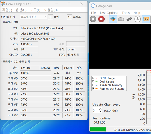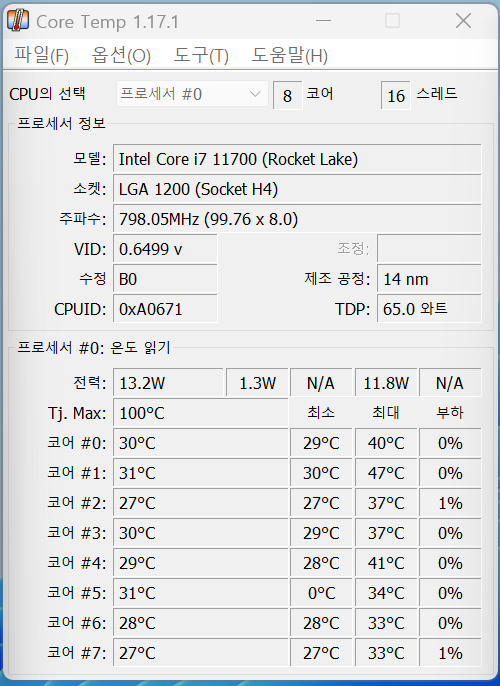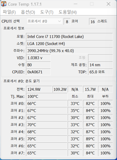 ● CPU : Intel i7-11700(로켓 레이크) [8 코어 16 스레드]