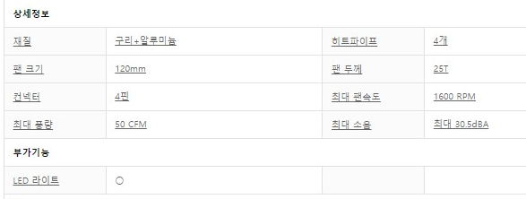 히트파이프 수, 쿨러의 풍량 그리고 그 밖의 정보들을 공유해드릴 예정이니 비교 참고하시면 될 것 같습니다.