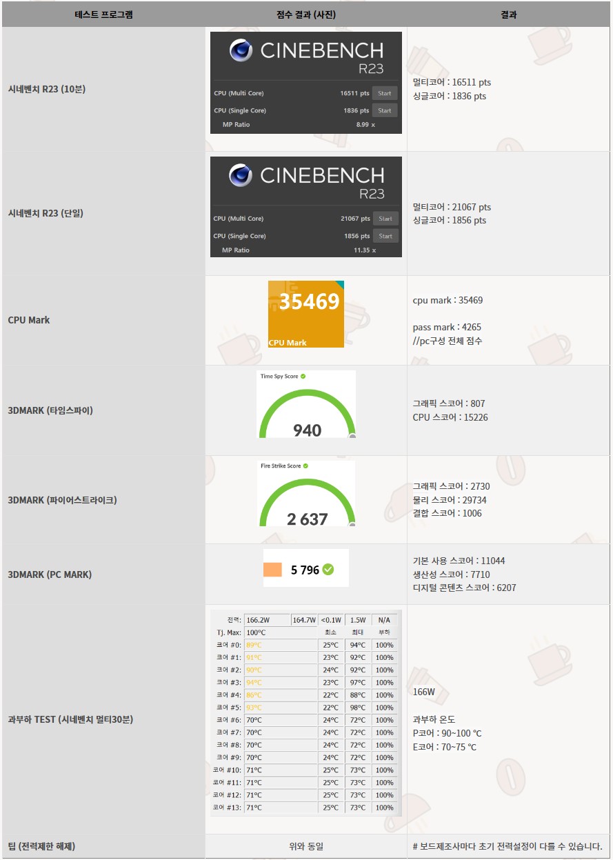 다만 test진행에 있어서 한 가지 의문사항이 발생한 부분은 '3Dmark' 테스트는 게임, 사무용 특화 벤치마크인지 cpu 점수는 늘었지만 결함점수는 13500과 같은 점수로 표기되는 오류? 현상을 확인하였습니다. 이 부분 인지하시고 읽어주세요.