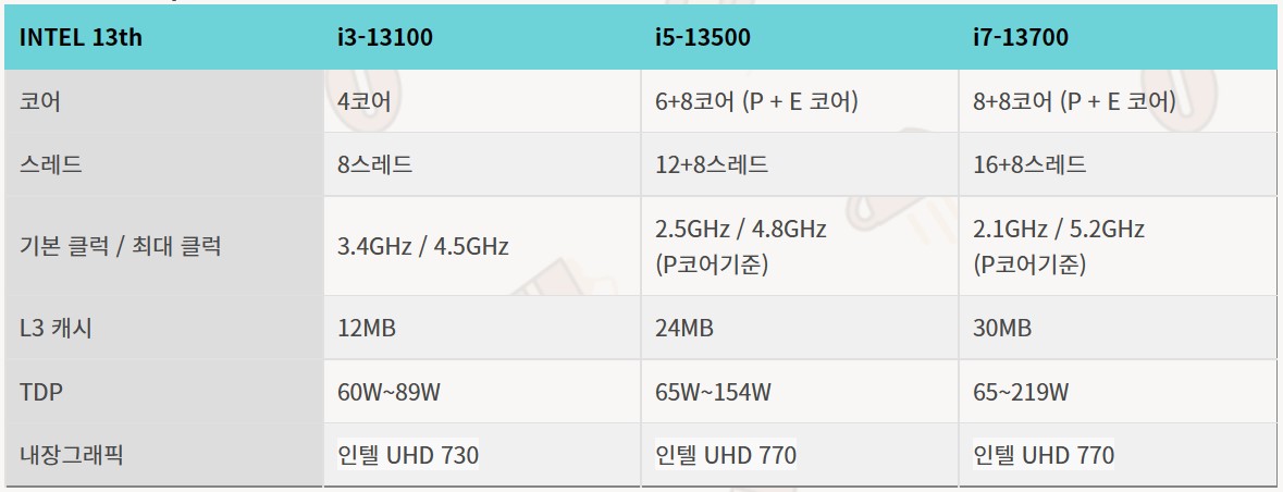● [13th] i3-13100, i5-13500, i7-13700 성능
