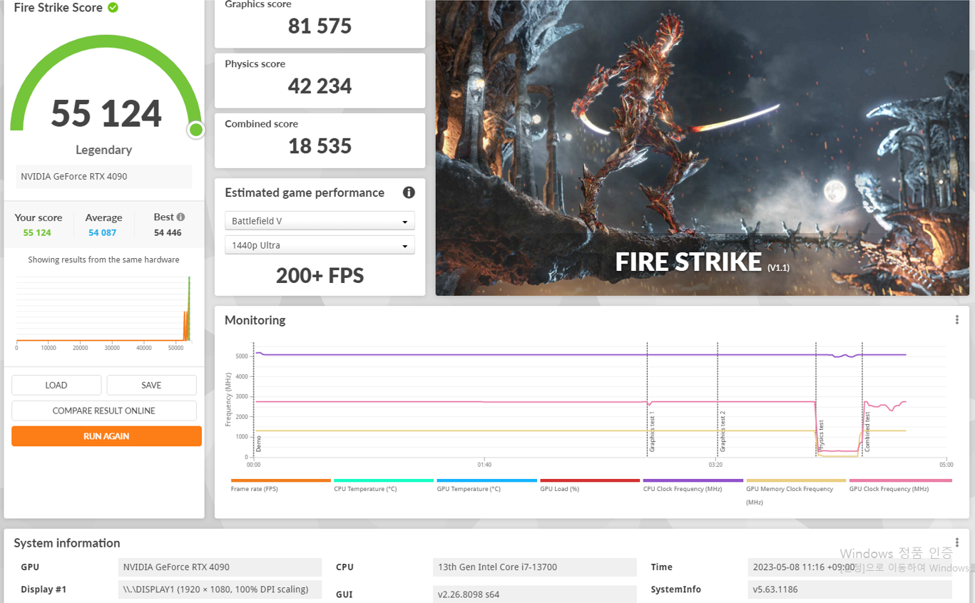 다음은 3DMARK의 FIRE STRIKE를 실행해 보겠습니다.