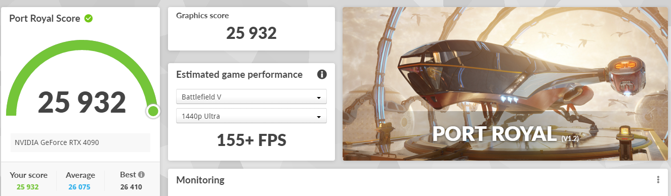 | 4080 | 그래픽점수 : 28,504 | 평균 프레임 : 209.12 FPS | 1% low framerate : 108.7 FPS | |
