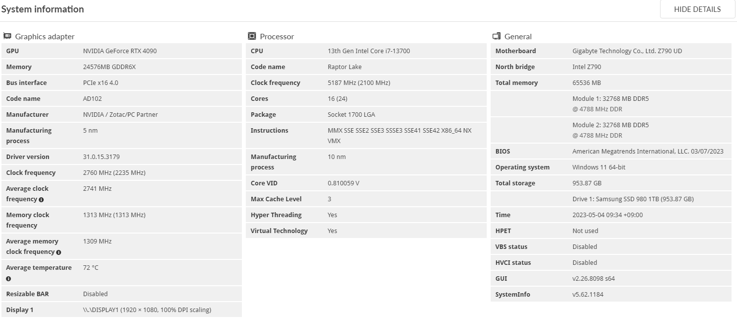 CPU : Intel i7-13700