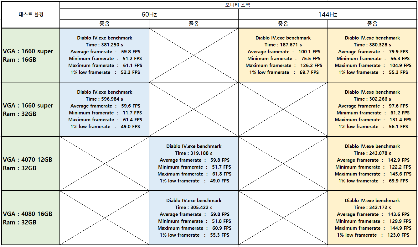 //아쉬운 점은 60 Hz 모니터를 사용해서 좀 더 고사양에서의 비교가 부족하지 않았나 싶습니다... 이점 참고 부탁드립니다.