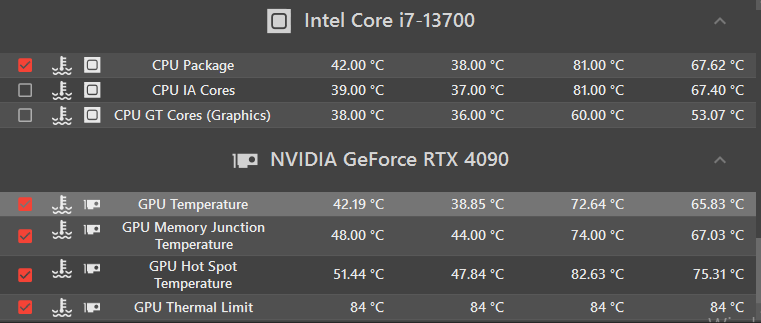 //그리고 TMI정보로 그래픽카드 온도제한이 걸려있습니다. 30시리즈부터 걸려있다고 알고 있는데 만약 그래픽 카드의 온도가 제한 온도 이상으로 올라가게 된다면 프리징 현상을 막기 위해서 적정선에서 성능을 제한해서 발열을 줄인다고 하네요.