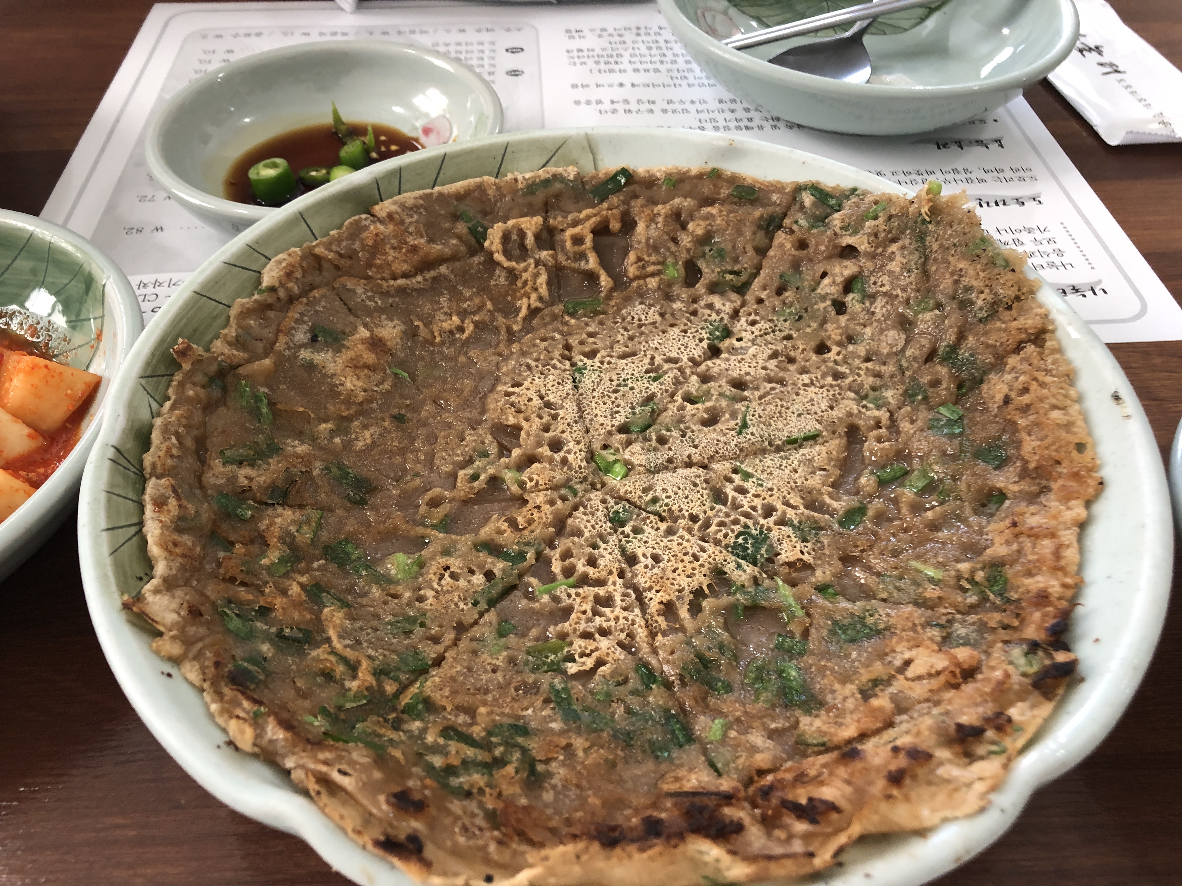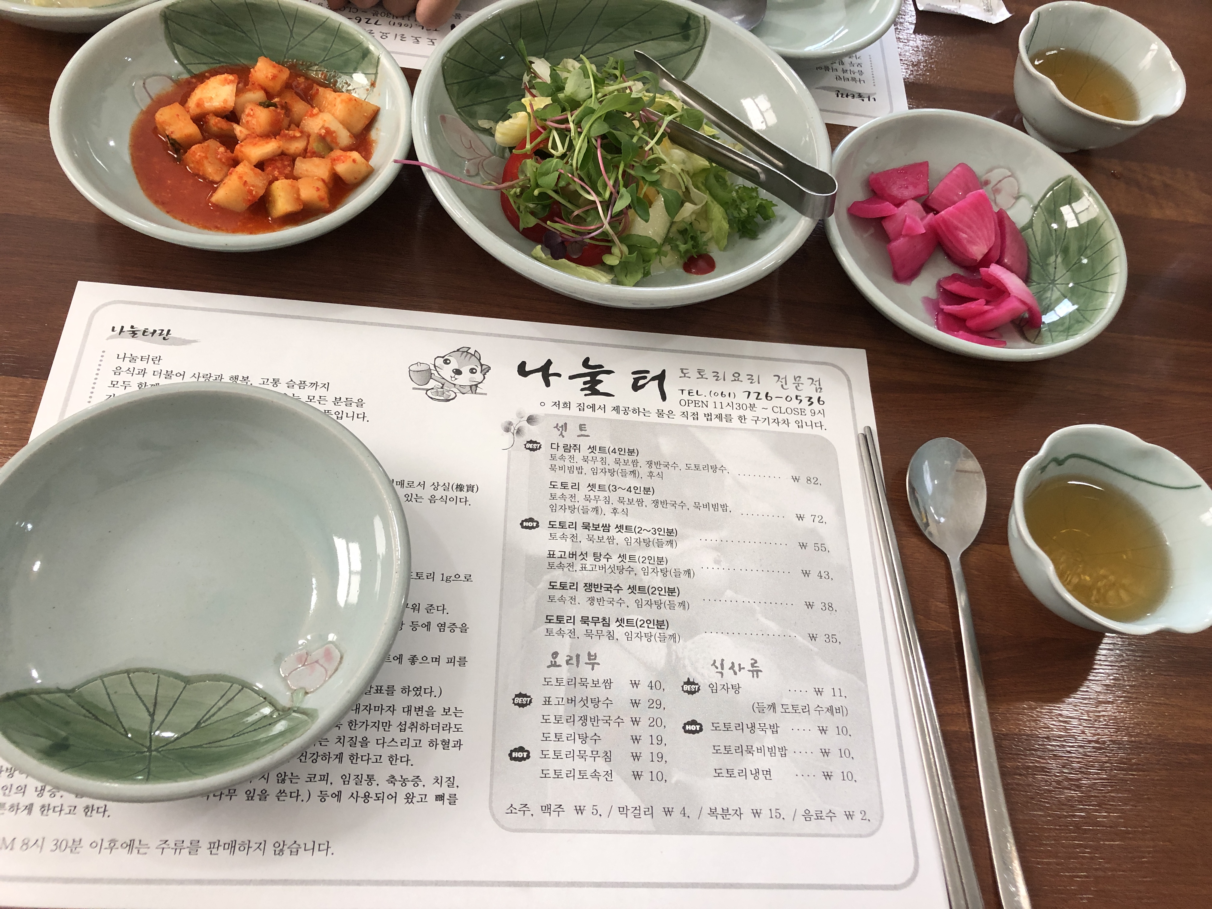 도토리 묵, 전, 샐러드와 함께 먹으니 맛있으면서도 든든한 아침 한 끼였습니다.