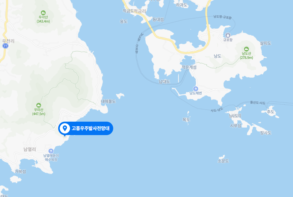 렌트했겠다 주변에서 발사체가 잘 보이는 위치를 찾다가 발견한 낭도라는 섬.