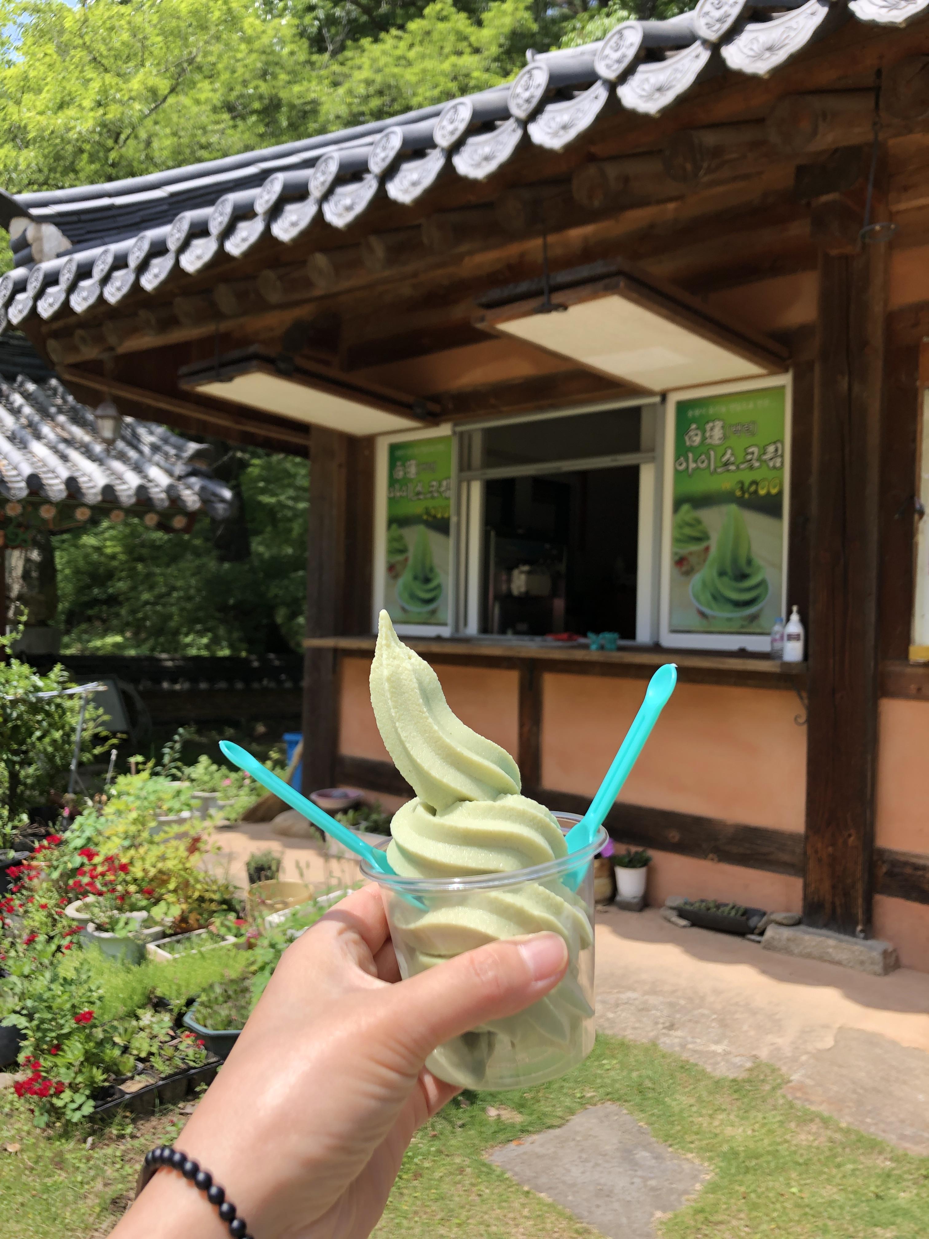 송광사를 뒤로하고 내려오는 길에 시원한 연잎 아이스크림도 하나 먹었습니다 ㅎㅎ