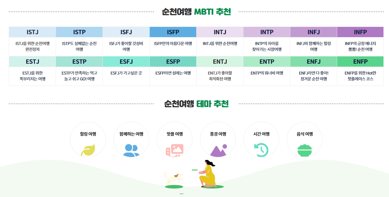 요즘 "MBTI"를 반영한 여행지 추천코스도 추천해 주는 기능이 있었습니다.