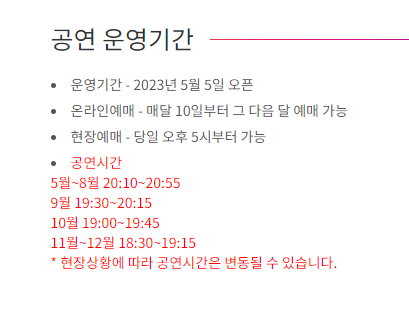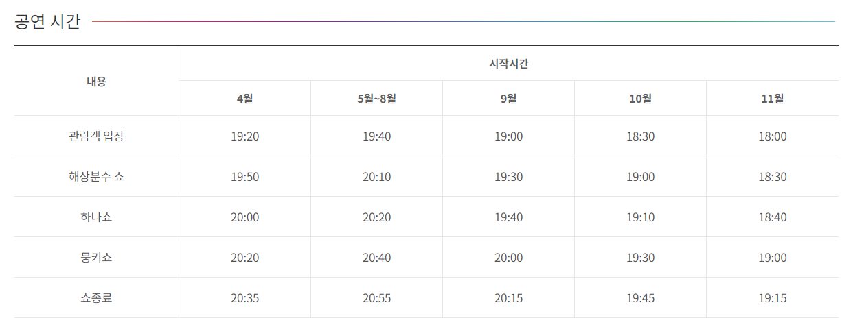 야외 공연이다 보니 겨울에는 운영을 하지 않고 있습니다. 반드시 방문 전에 일정을 확인하고 방문하는 것을 추천드립니다.